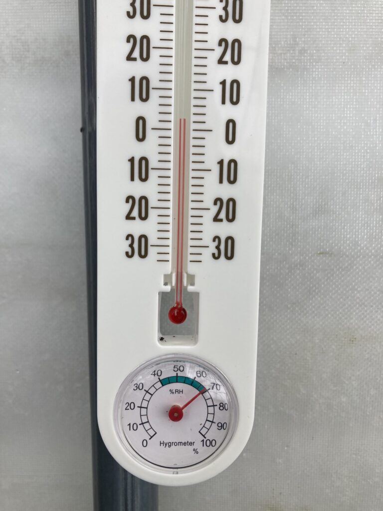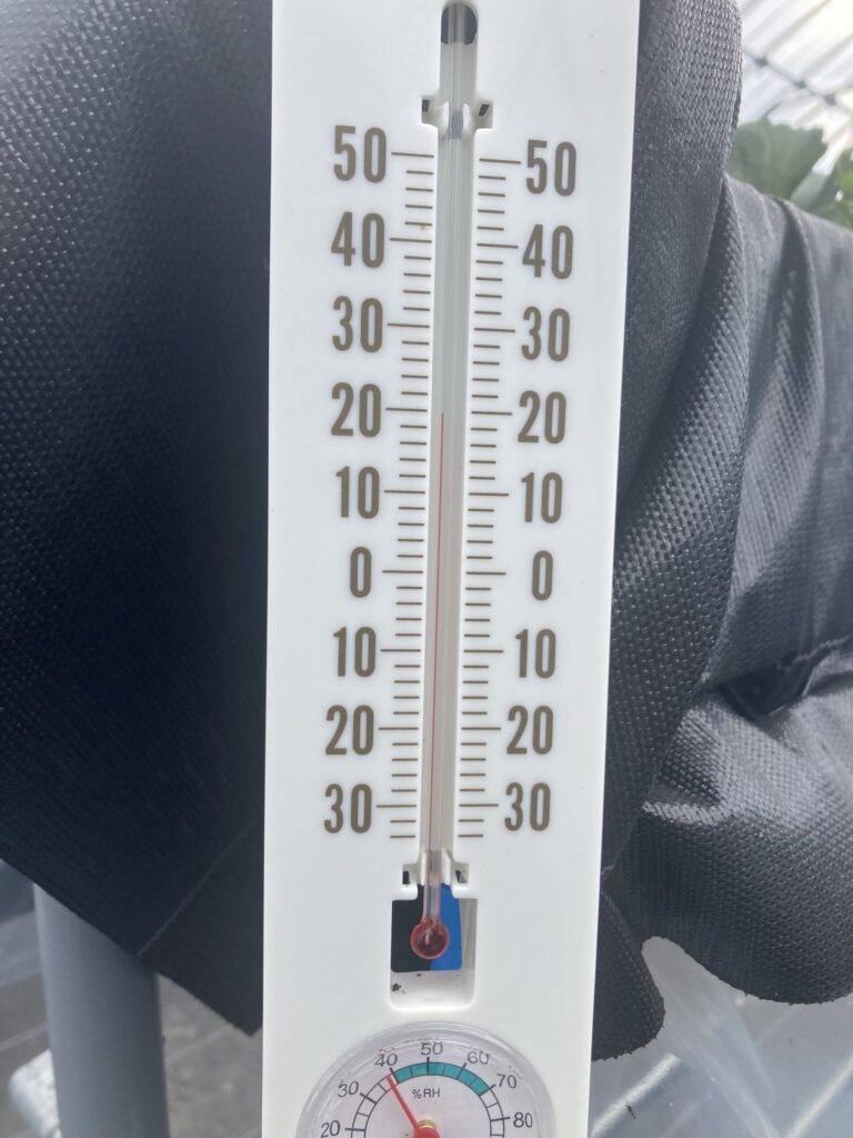少し晴れ間がみえており、この時のハウス内温度は